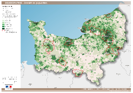 Carte représentant la densité de population (en nombre d'habitant au km²) par commune (Source INSEE/RP 2013).