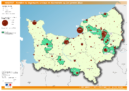 Carte présentant le recensement du parc locatif social communal en 2014 (Source : RPLS 2014)